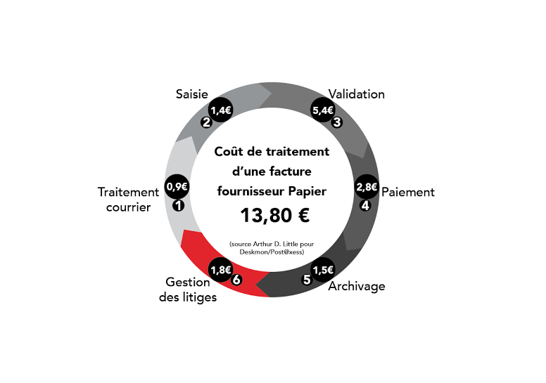 Le coût de traitement manuel d’une facture fournisseur papier vous coûte en moyenne 13.80 euros.